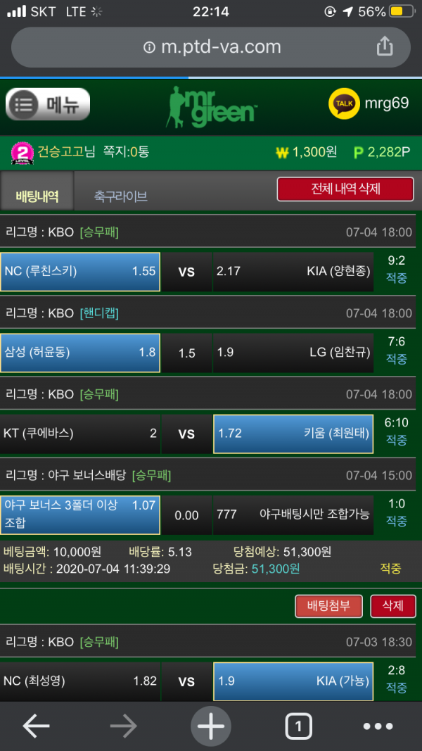 앞으로 있으실 경기도 모두 적중을 기원합니다.