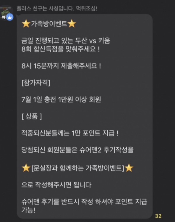 몇일전에 가족방에서 이벤트 참여했는데 정답을 맞췄습니다 !