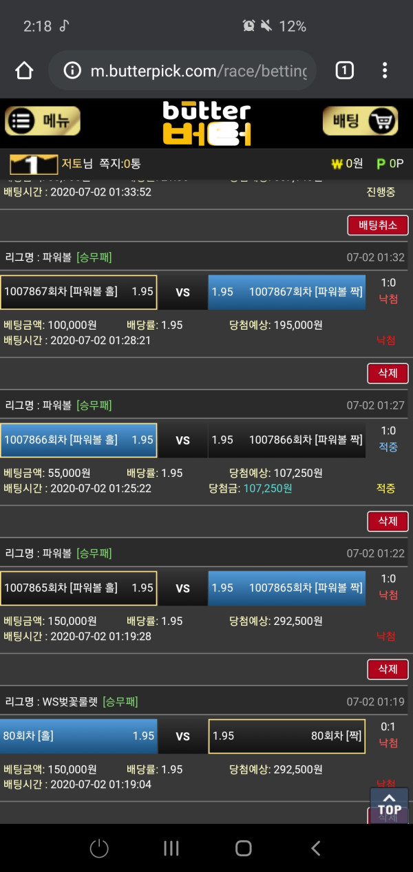 일야답지점요ㅜㅜ 오케이배팅내역!!