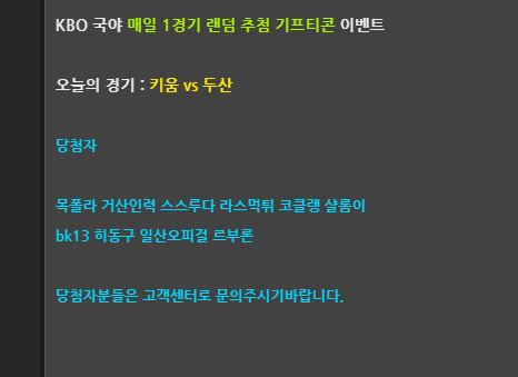 적중도하고 치킨도 먹고 위키 KBO 치킨 기프티콘 당첨을 축하드립니다!