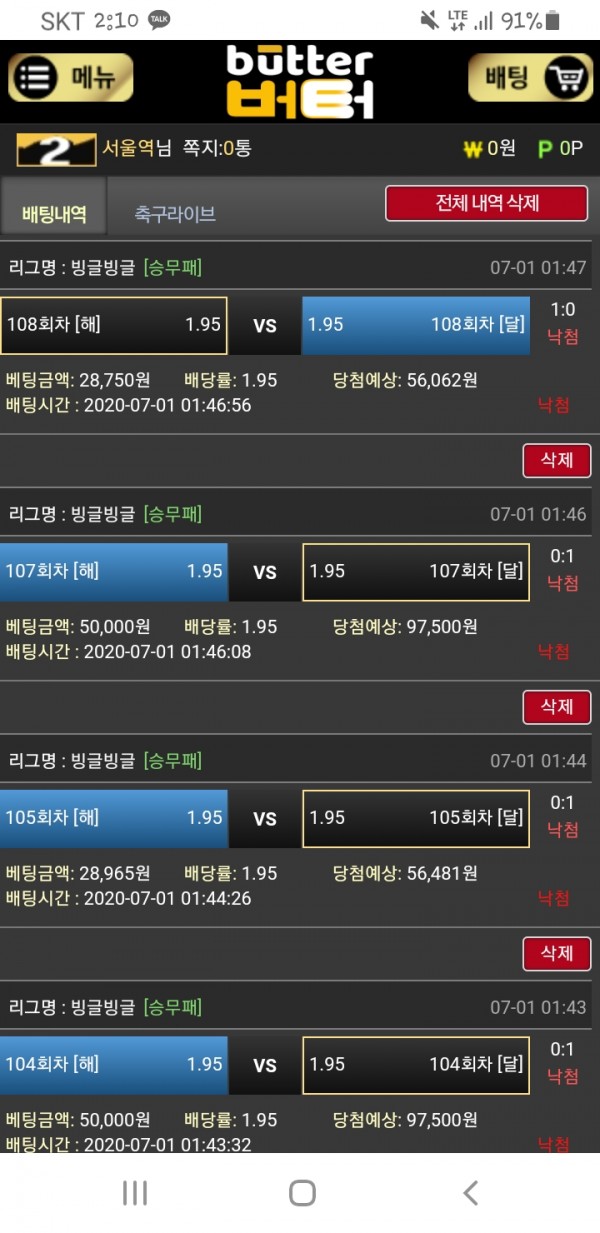 오케이가즈아!!! 배팅내역