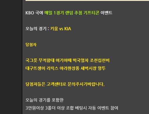 위키 국야 치킨경기 당첨후기!