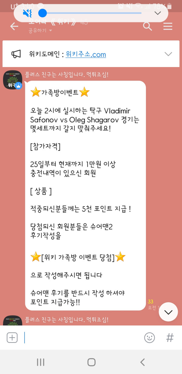 위키 가족방 이벤트 당첨 축하드립니다 ㅎㅎ