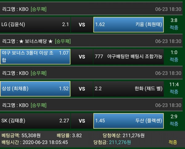 국야 한경기빼고 정배라 운이좋게도
