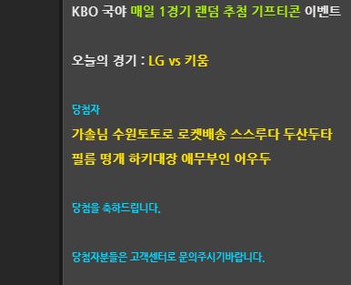 위키 KBO 치킨 기프티콘 경기당첨을 축하드립니다~
