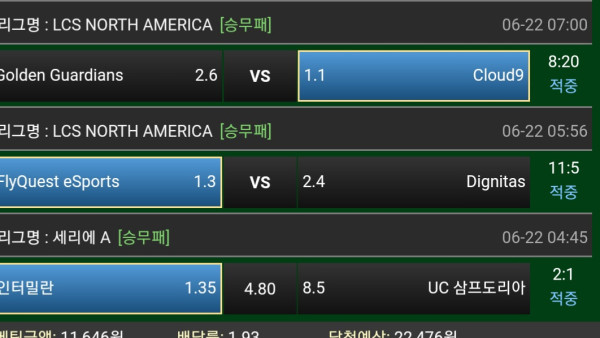 어제에이어서 배팅하시는내역 적중이시네요 ^^