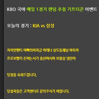 주말동안 위키에서 국야도 적중하고 KBO 기프티콘 이벤트 경기도