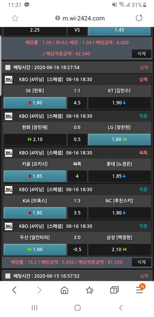 한폴낙 아쉽습니다...오늘은 적중하시고