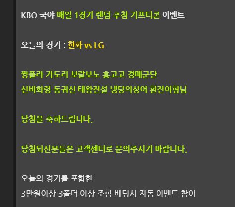 어제 위키에서 크보 엘지경기 적중시키고 치킨 기프티콘까지 당첨됐네요 ㅋㅋ