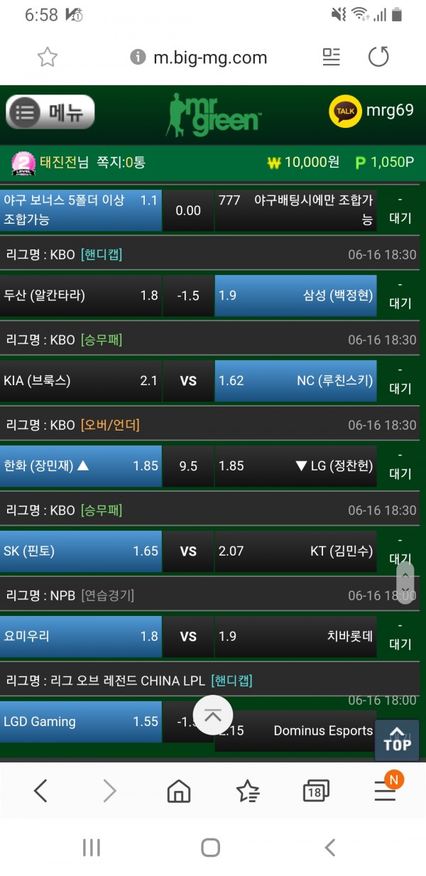 오늘 국내야구경기랑 LPL경기 같이 배팅해주셧네요!! ㅎㅎ