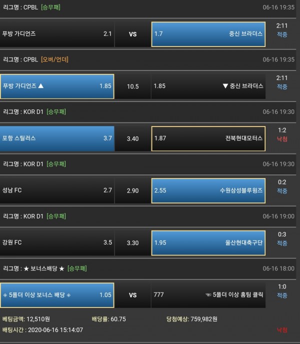 그나마 로또로 배팅했던게 아쉽게 한폴이군요.