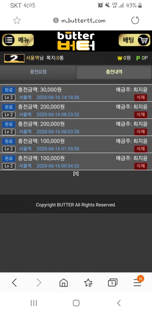 버터 배팅내역