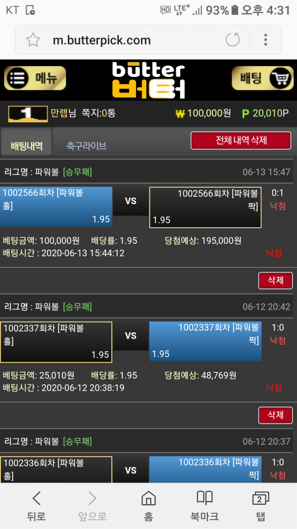 티웨이 적중 후기샷