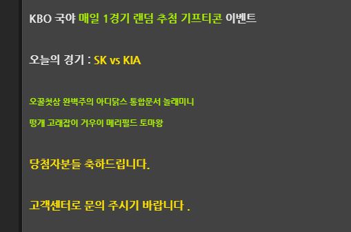오늘도 적중도 하시고 치킨을 기프티콘 경기에 응모하세요
