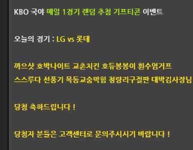 어제 국야도 적중하고 치킨 기프티콘도 당첨됐어요!