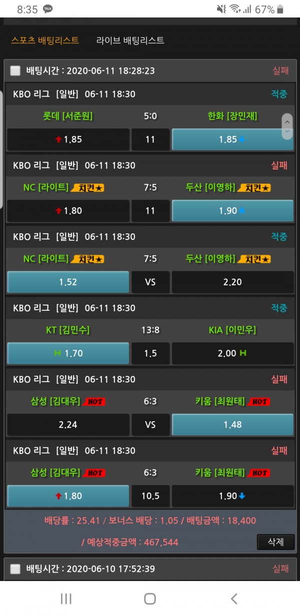 야구 최다득점맞추기 . 탁구 스코어맞추기등등..