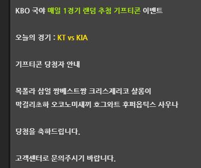 치킨 기프티콘 경기 이벤트 당첨을 축하드립니다!