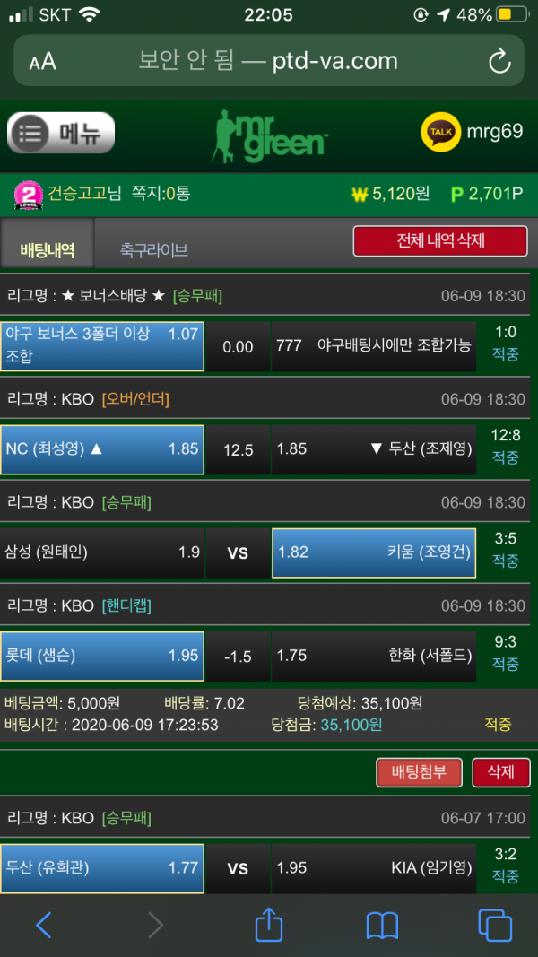 미스터그린 3폴더 당첨샷