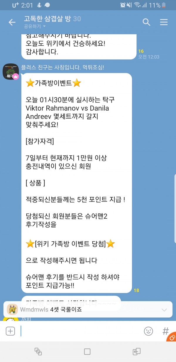 위키 가족방 돌발이벤트 적중을 축하드립니다!