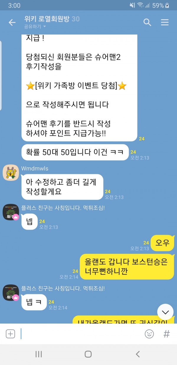 위키 가족방 돌발이벤트 적중을 축하드립니다!