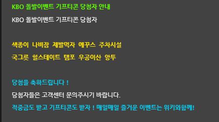 국야 치킨 기프티콘 당첨을 축하드립니다!