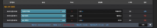 실제축구랑 시뮬축구 섞어서 배팅했는데 실제축구가