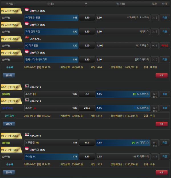 와우~ 베팅내역이 파아아아랗네요~