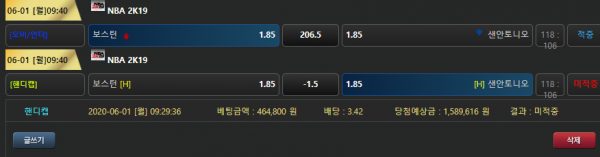 핸디 기준점이 애매해서 보스턴 승이랑 엄청 고민했는데