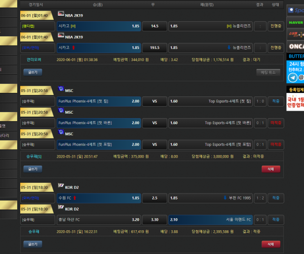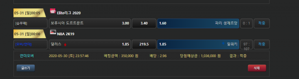 그리고 6월 첫 배팅 가상농구 경기 배팅내역 확인해보니 이것마저 올킬! 대단하세요!