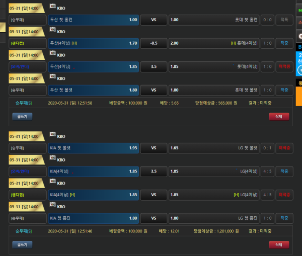 배팅하신 KBO 경기들 한폴낙 진심으로 안타깝습니다T-T..