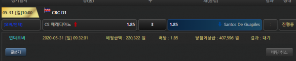 베팅결과를 확인해보니 오버가 떴네요 ㅜㅜ
