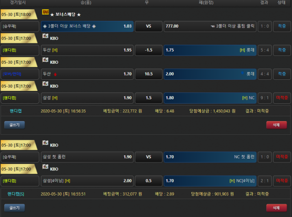 배팅하신 KBO 경기 낙첨들 진심으로 안타깝습니다T-T..