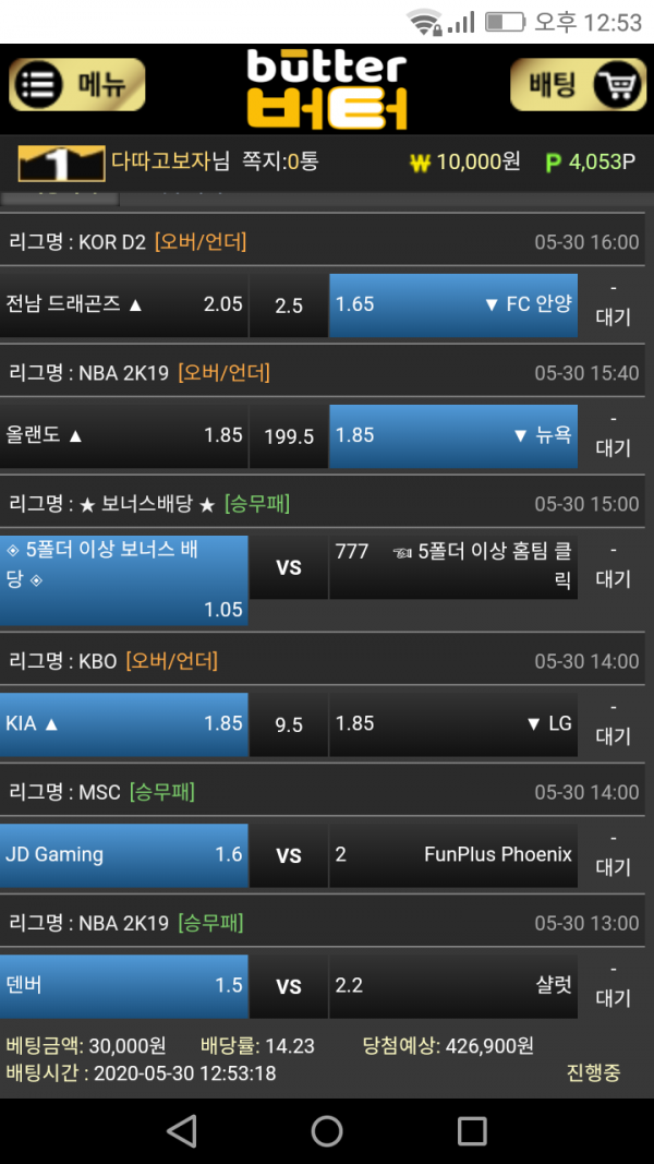 그리고 버터에서만 진행하는 KBO 한판승부 스폐셜이벤트도 있으니 게시판 확인하시고,