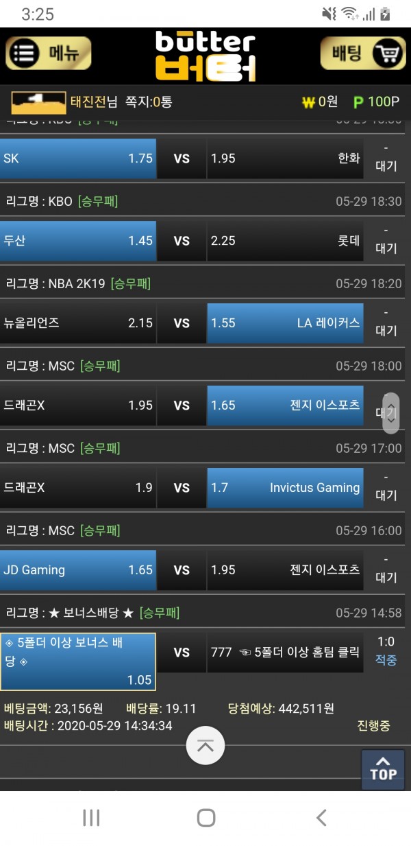 그리고 버터에서만 진행하는 KBO 한판승부 스폐셜이벤트도 있으니 게시판 확인하시고,