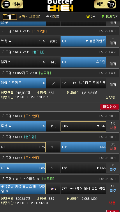 버터 가상경기 적중가자!