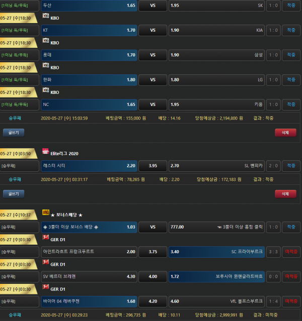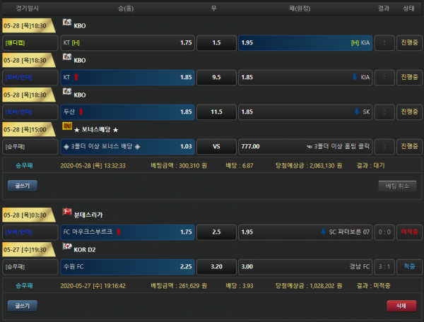 요즘 전부다 한줄밖에 배팅 안하시네요.