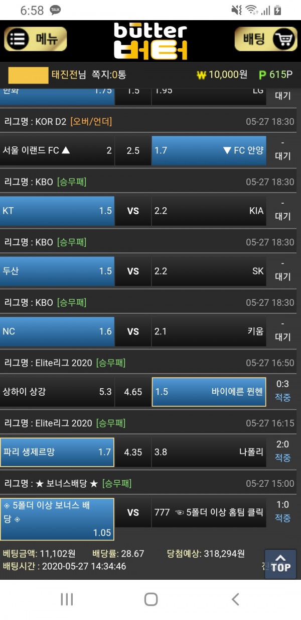 배팅하신내역 한폴낙 아쉽습니다.... 한화....