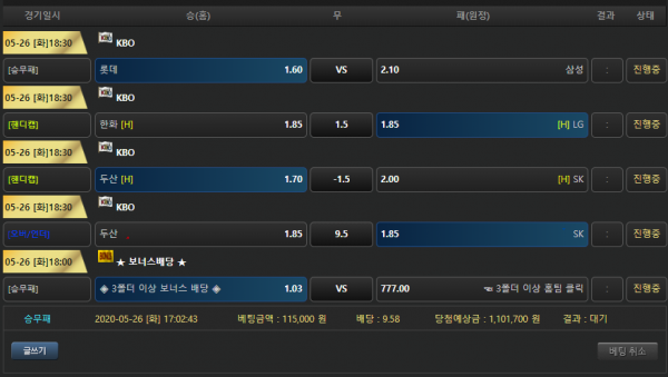 크보 오 .. 오늘은 올 언더인거같은데