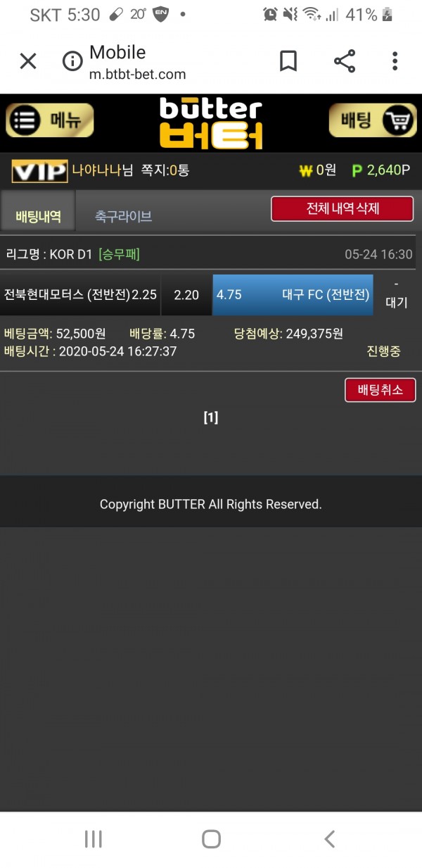 배팅하신 내역 아쉽습니다.