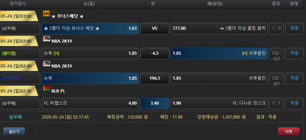 게다가 무승부 적중으로 달달하시겠습니다 ㄷㄷ