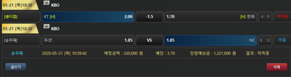 배팅하신 내역 아쉽습니다.KT 잘하는데 ㅠㅠㅠ