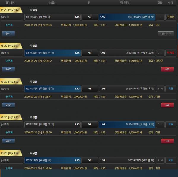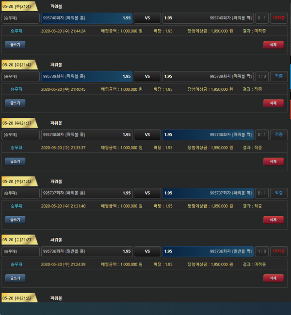 오늘 국야경기와 시뮬경기는 망했지만 파워볼로 또 이기고가요