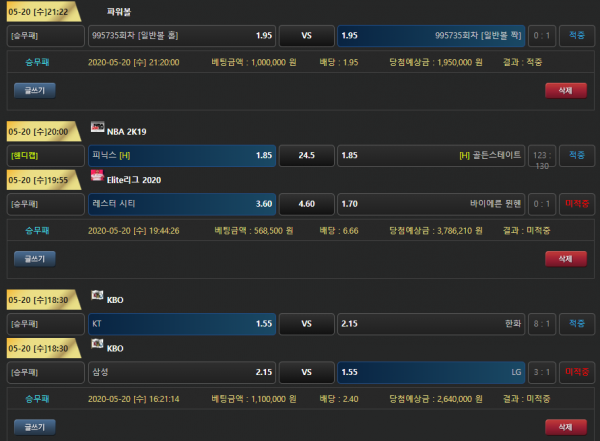 배팅하신 KBO경기와 가상경기 낙첨은 진심으로 안타깝지만