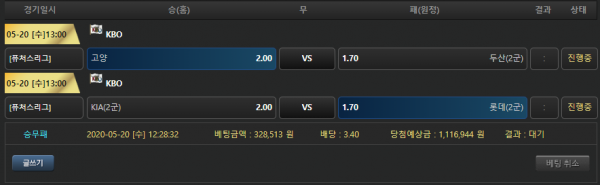 퓨처스는 원래 안건드는데 오랜만에 배팅 해봅니다 퓨처스 ㅋㅋ 이거 먹으면 KBO 엎어치기 해야겠네요