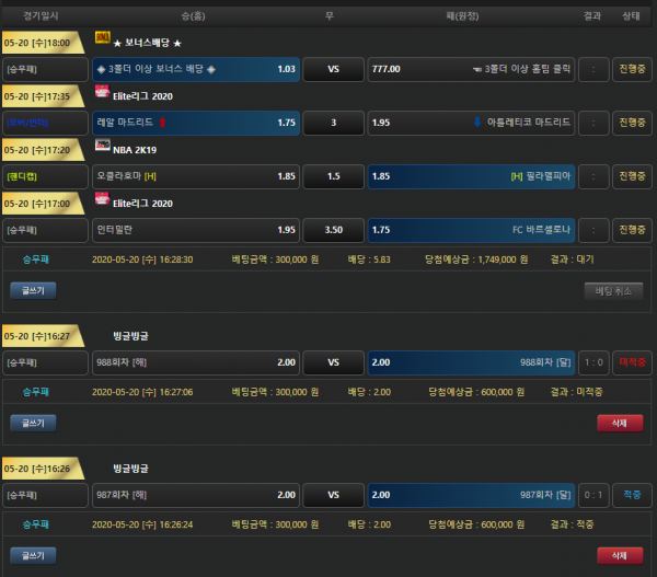 시뮬경기 발매후 회원님들의 반응이 좋으니 저희도 기분이 좋네요.