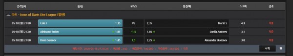 ㅎㅎ다트랑 탁구 핸디 3폴더 배팅했는데