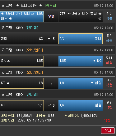 배팅하신 경기 낙첨 진심으로 안타깝습니다T-T..