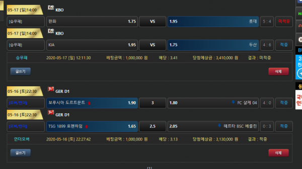 배팅하신 내역 아쉽습니다. 내일 배팅은 꼭 성공 하시길 기원드릴게요.