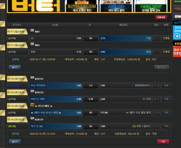 그리고 버터에서만 진행하는 KBO 한판승부 스폐셜이벤트도 있으니 게시판 확인하시고,
