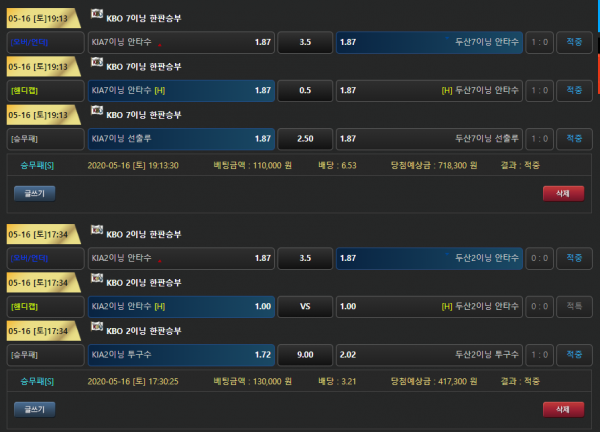 배팅하신내역 적중 축하드립니다. 이벤트로 발매된 경기라
